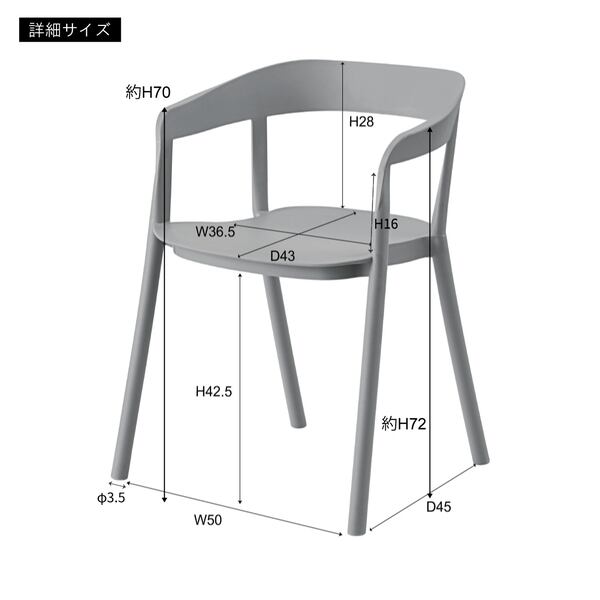 W45×D49×H82×SH43:W57×D51.5×H76×SH46