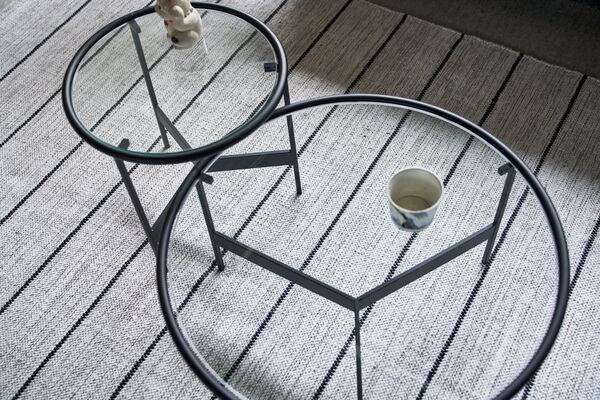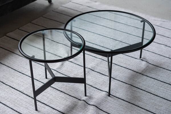 テーブル ガラステーブル ラウンドテーブル 丸 円形 ガラス ローテーブル センターテーブル 机 アイアイン 室内 おしゃれ シンプル インテリア 異素材 ブラック 黒 リビング ショップ 店舗 カフェ