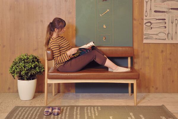 エコモ 片肘ソファ 天然木 アッシュ ウレタン塗装 合皮