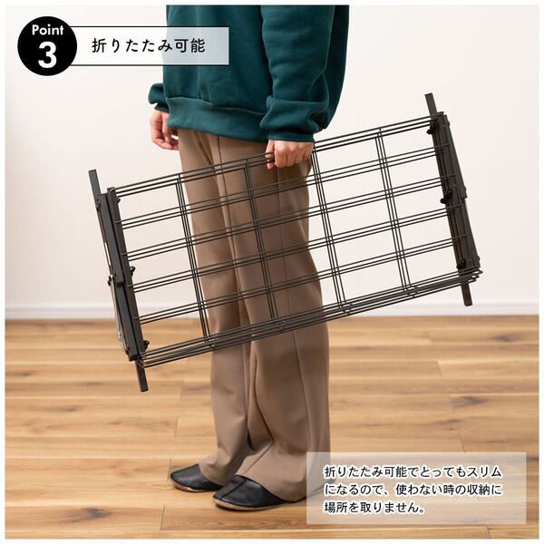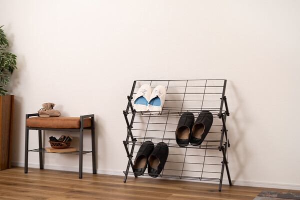 フォールディングシューズラック シューズラック 靴 くつ ラック シューズ スリム 玄関 収納 すっきり シンプル 黒 白 ブラック ホワイト 省スペース スチール 金属 おしゃれ コンパクト 通気性 機能性 ストッパー付き 本棚 S字フック