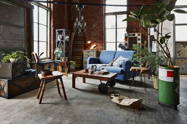 ジーンズソファ 2人掛 木フレーム ウィービングベルト コットン