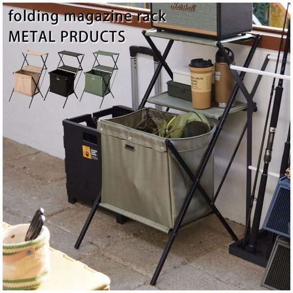フォールディングマガジンラック マガジンラック ラック フォールディング 折りたたみ ソファサイド ベッドサイド サイドテーブル ナイトテーブル 収納 収納ボックス アウトドア キャンプ レジャー ガーデン グリーン ベージュ ブラック