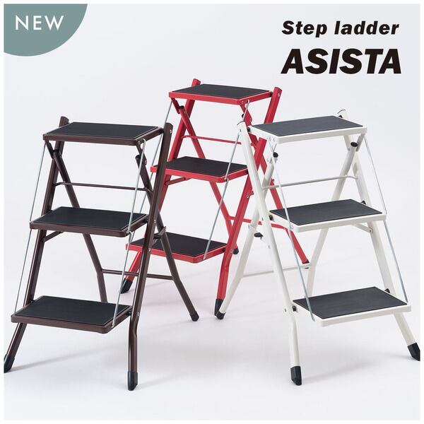 ステップ台 踏み台 3段 折りたたみ おしゃれ 滑りにくい スリム コンパクト スチール 軽量 持ち運び グリップ付き ノンスリップ 収納 ディスプレイ 簡易チェア チェア スツール ブラウン 茶 レッド 赤 ホワイト 白