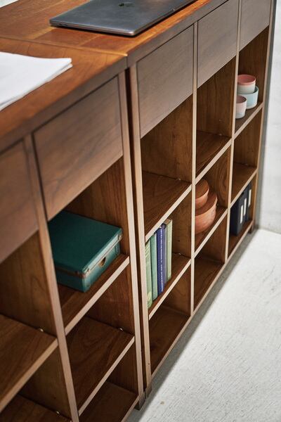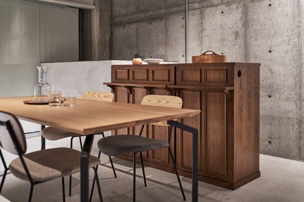 スペック:天然木(ミンディ) 天然木化粧合板(ミンディ) ラッカー塗装 可動棚6枚