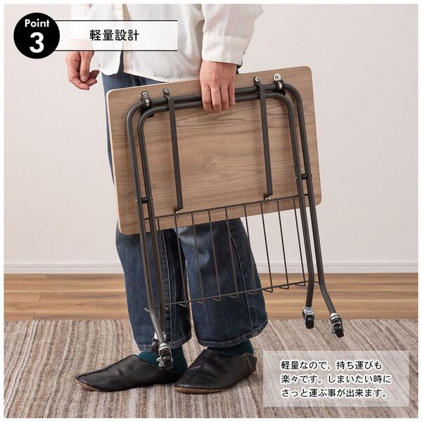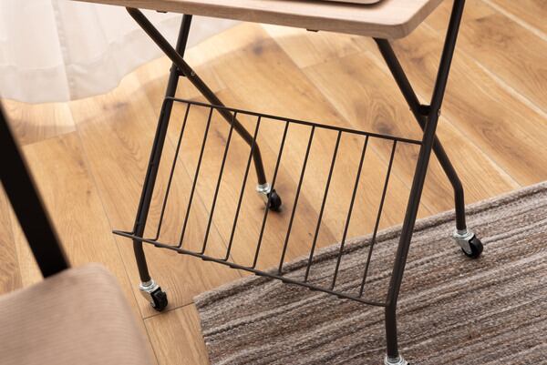 検索ワード:折りたたみ式テーブル テーブル フォールディング キャスター付き 収納 飾り棚 移動 転がる おしゃれ 木目調 スチール 高さ47cm キッチン 作業デスク シンプル ダークグレー