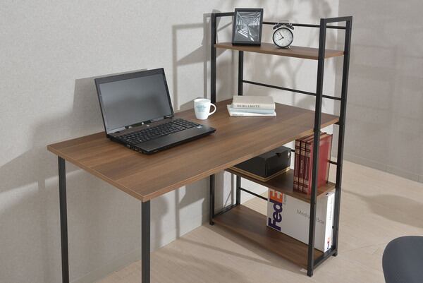 デスク PT-461BR おしゃれ シェルフ付 棚付き オフィス ワーク 書斎机 ユニットデスク デスク 在宅ワーク 木製 おしゃれ シンプル