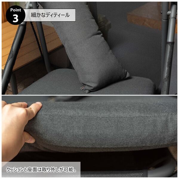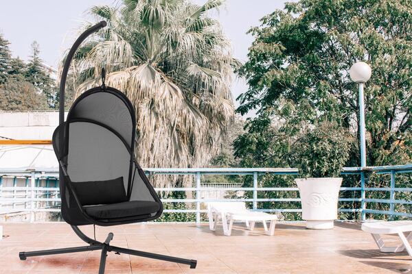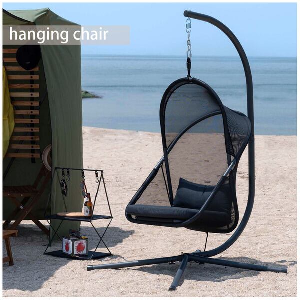 検索ワード:ハンギングチェア 自立式 チェアー 椅子 イス 折りたたみ式 ガーデン アウトドア ルーフ付き ゆらゆら 吊り下げ 日除け 日よけ キャンプ リゾート おしゃれ 大きめ 大きい ゆったり メッシュ ブラック