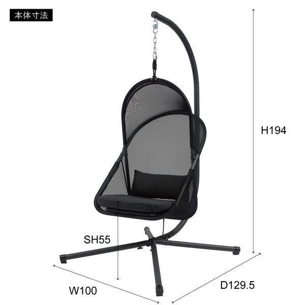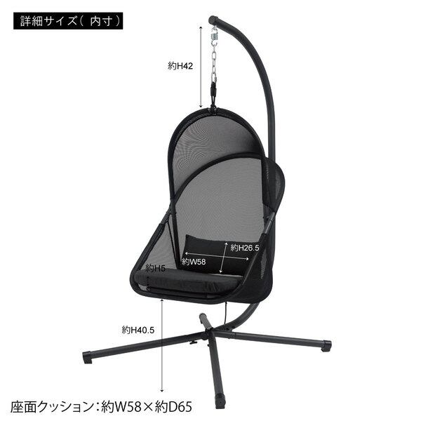 ハンギングチェア RKC-540BK 自立式 チェアー 椅子 イス 折りたたみ式 ガーデン アウトドア 屋内 屋外 ルーフ付き ゆらゆら 吊り下げ 日除け 日よけ キャンプ リゾート おしゃれ 大きめ 大きい ゆったり メッシュ ブラック 黒