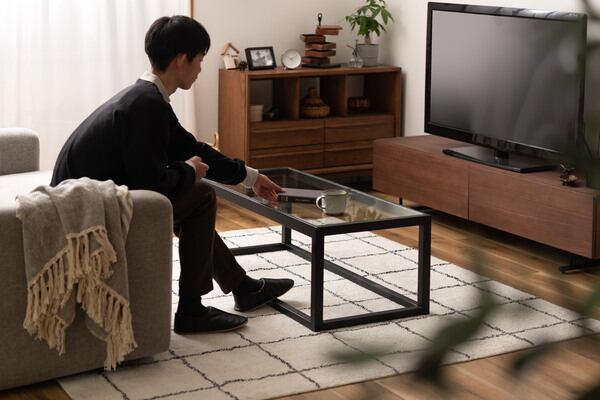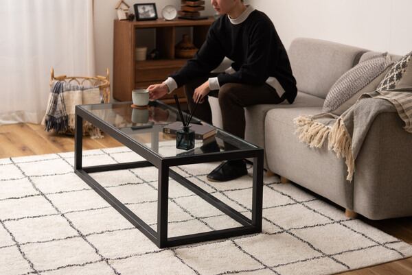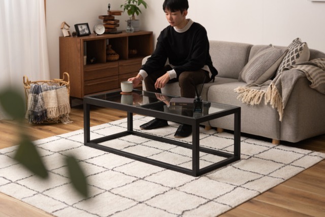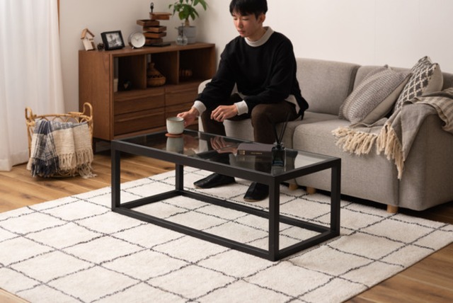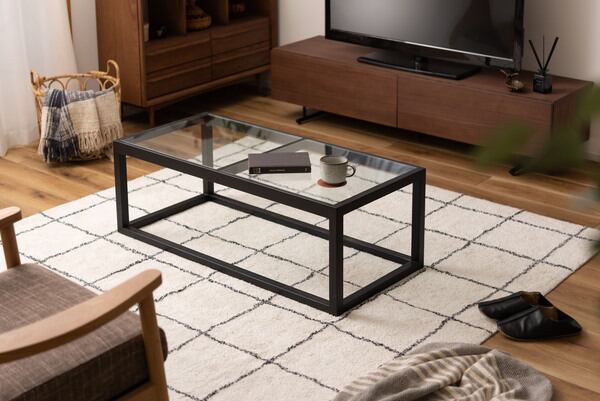 検索ワード:リビングテーブル ガラステーブル センターテーブル ローテーブル テーブル 天然木 幅110cm ナチュラル ブラック おしゃれ 北欧 モダン シンプル 強化ガラス