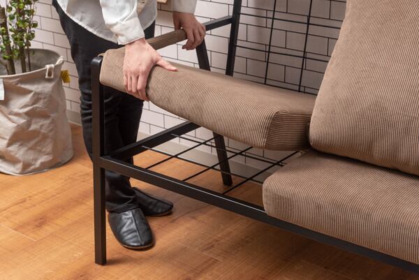 検索ワード:2人掛けソファ ソファー おしゃれ スチール 黒 ブラック コーデュロイ 肘掛けあり アーム付き インダストリアル モダン シンプル グリーン ベージュ グレー