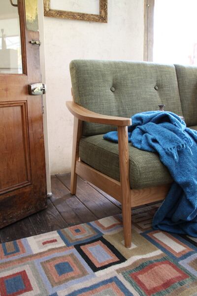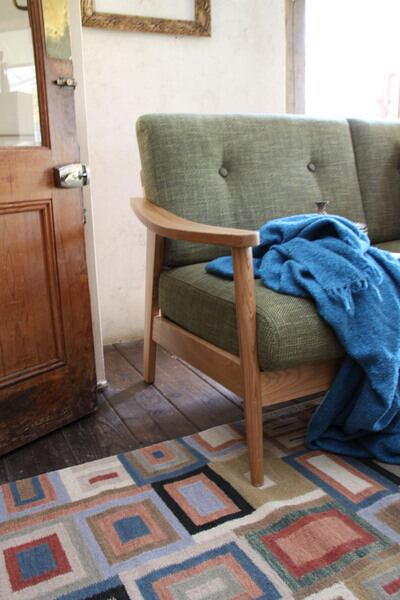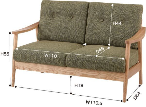 バッスム 2人掛 天然木 アッシュ ウレタン塗装 ポリエステル コットン