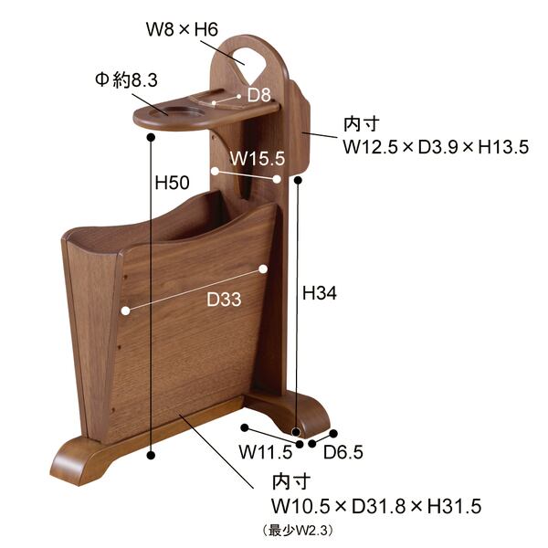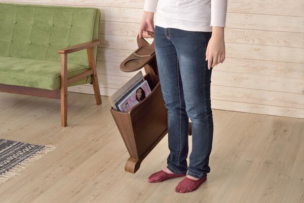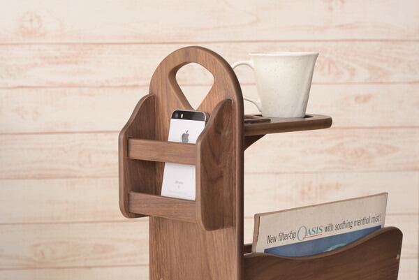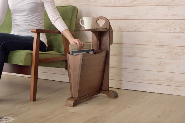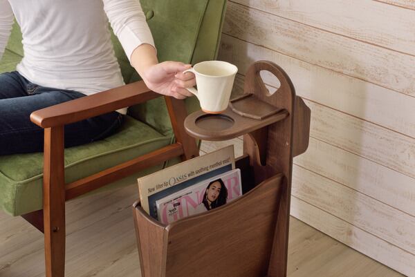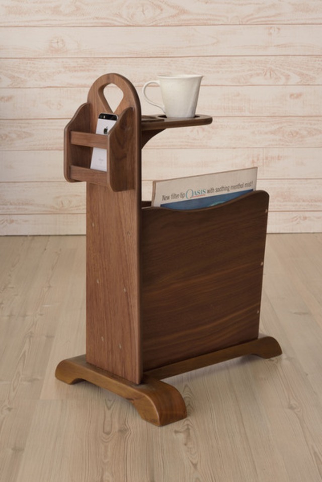 トムテ サイドテーブル TAC-252WAL 収納 リビング テーブル マガジンラック ドリンクホルダー ウォルナット 天然木 ナイトテーブル インテリア コンパクト