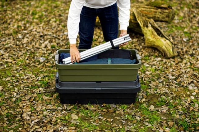 検索ワード:トランクカーゴ スタッキング 70L 収納 ロータイプ アウトドア キャンプ バーベキュー カーキ ブラック グレー 座れる 簡易椅子 ベルトガイド フタ 積み重ね