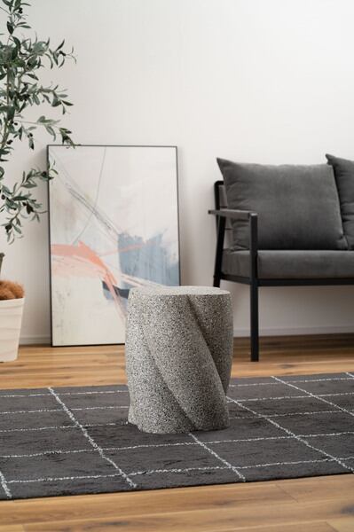 サイドテーブル AST-60 テラゾー柄 おしゃれ オブジェ ナイトテーブル ソファサイド グレー ホワイト モダン ベッドサイド ミニテーブル ストーン 大理石調 ツイスト 石 灰色 マーブル 寝室 リビング ショップ カフェ 店舗