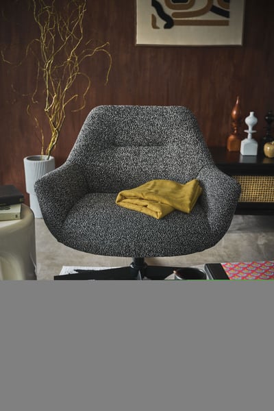検索ワード:ラウンジチェア パーソナルチェア 回転式 混色生地 ダークグレー イス 椅子 クッション性 おしゃれ シンプル モダン 回転チェア ワークチェア 在宅勤務 テレワーク リモートワーク